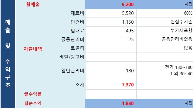 | 월매출 | 9,200 만원 |